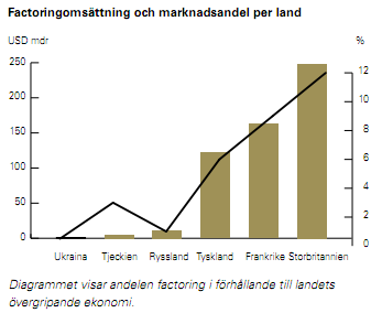 factoring, som är en finansiell tjänst som ger användarna flexibilitet, genomförbarhet och effektivitet som konventionella finansieringsinstrument inte kan erbjuda. Därför är factoring en attraktiv finansieringslösning för många företag på dessa marknader. Inom EU utgör generellt sett factoring cirka 6 procent av BNP. I Storbritannien och Italien, där factoring är oreglerat, är andelen factoring av BNP störst med cirka 11 procent respektive 8 procent.